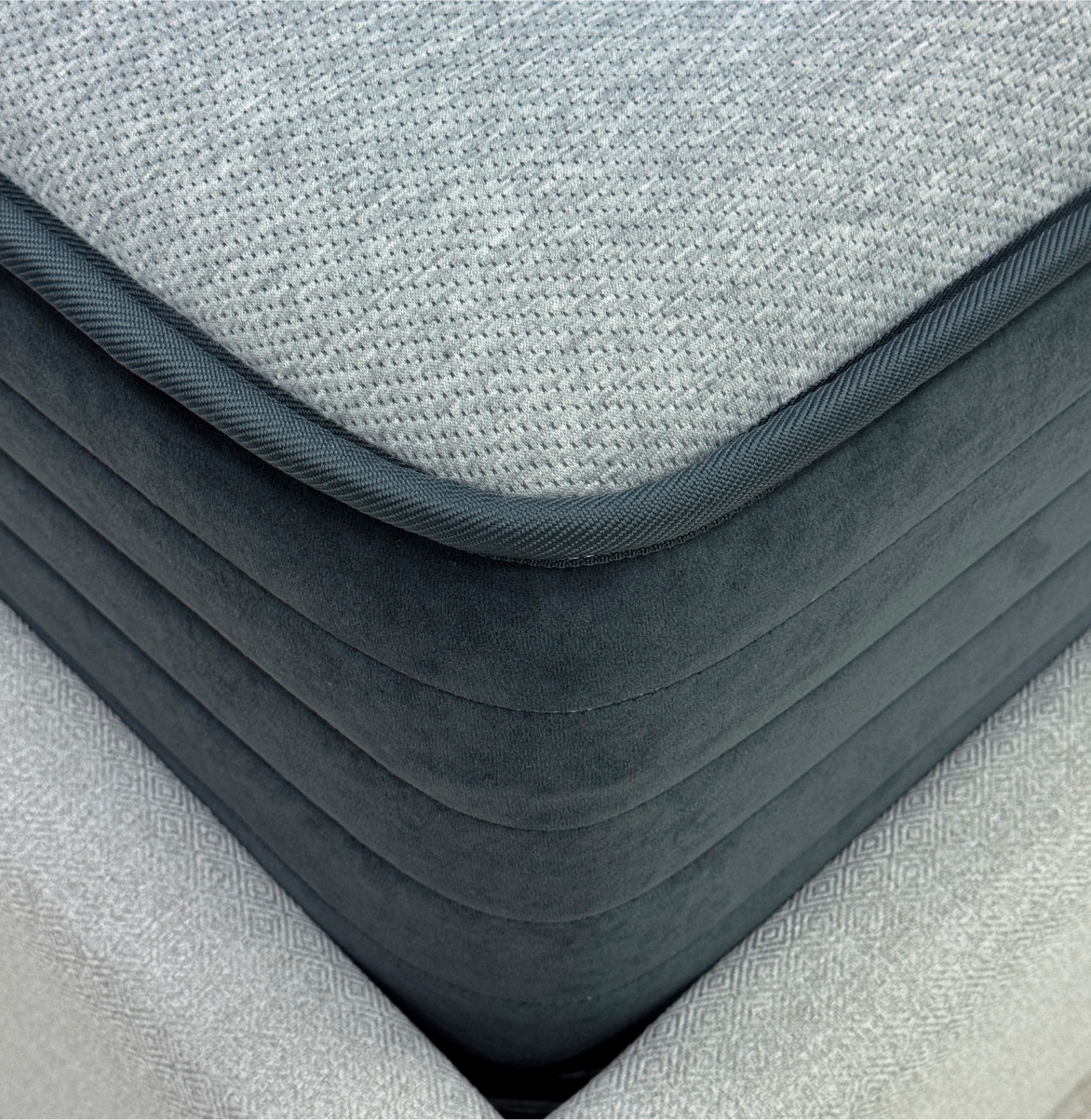 Короб из ППУ - элемент конструкции матраса, усиливающий жесткость пружинных моделей по краям, предотвращая проседание при регулярной нагрузке. Особенно важен при локальных нагрузках на борт матраса (посадка, подъем). Используются два вида пен: стандартная у изголовья и повышенной плотности в боковых зонах.